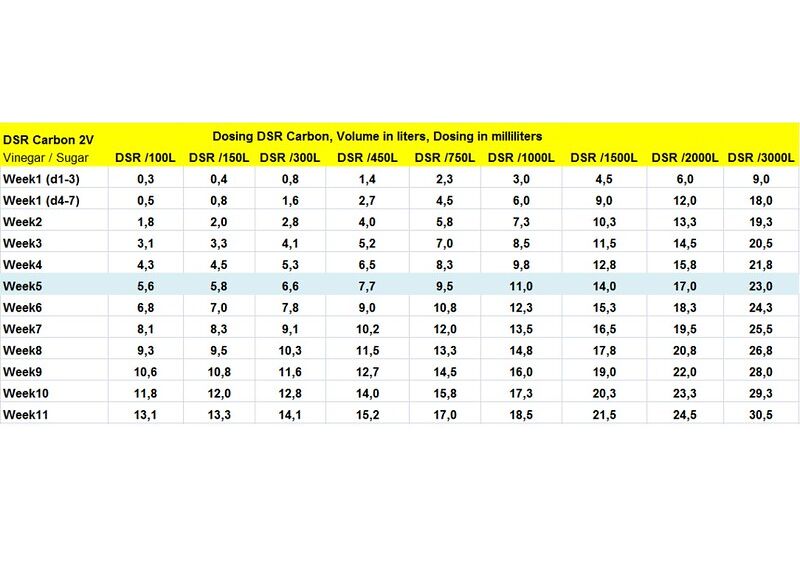 DSR Carbon v / s: Средство для удаления нитратов можно дозировать в соответствии с таблицей.