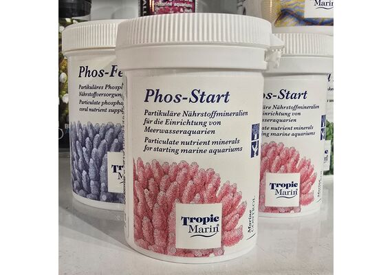 Tropic Marin® Phos-Start создан на основе механизмов подкормки коралловых рифов питательными веществами, которые наблюдаются в естественной среде. Нерастворимые частицы экскрементов планктона и рыб снабжают кораллы фосфатами и всеми другими необходимыми веществами, которые необходимы для обеспечения неповрежденной микробиологии, роста крепких кораллов и красивой окраски. Эти знания нашли применение в новом продукте Tropic Marin® для запуска рифовых аквариумов.