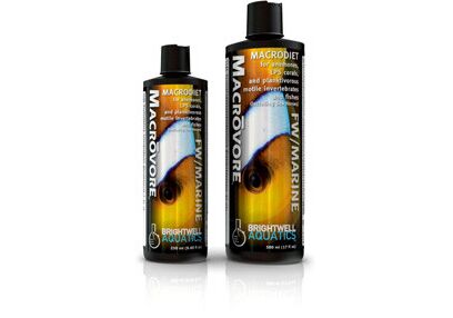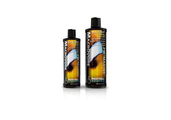 Brightwell Aquatics Macrovore удовлетворяет потребности в питании подвижных и сидячих организмов, которые питаются относительно крупным планктоном и взвешенными частицами органического материала. Питательный профиль конкретной используемой икры способствует долгосрочному здоровью, росту и улучшению (например, интенсификации) окраски у потребителей. Macrovore представляет соответствующий диапазон размеров частиц для кормления многих видов морских коньков и поощряет планктофорические виды, которые часто трудно акклиматизируются в неволе, чтобы начать кормление. Питательное воздействие используемых икры и морских масел помогает снизить общие потребности в кормлении, обеспечивая большее питание на единицу сухой массы, помогая уменьшить общее воздействие кормления на качество аквариумной воды.